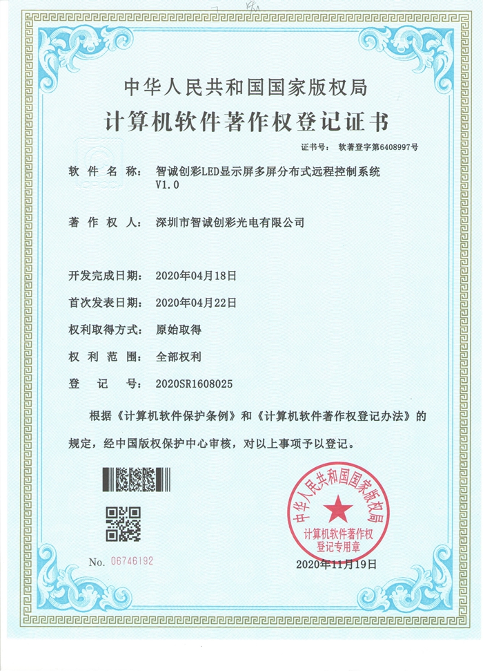 計(jì)算機(jī)軟件著作權(quán)登記證書